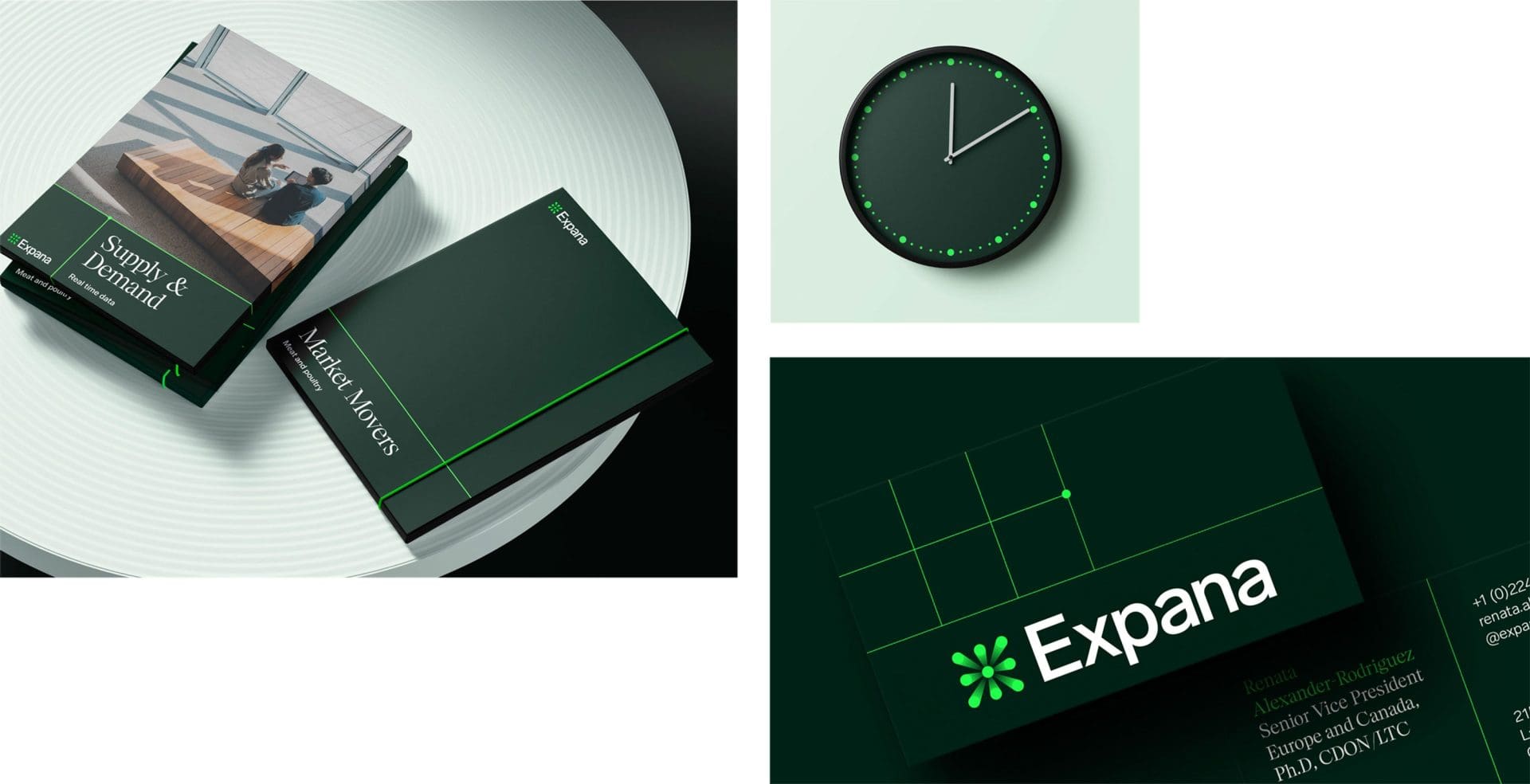 Finally, the colour palette positions the business as technology-driven and modern, reflecting the world of data with sophisticated and refined colours that display a touch of vibrant energy through a confident green. The new visual identity differentiates Expana from the competition and establishes them as forward-thinking leaders within the market.