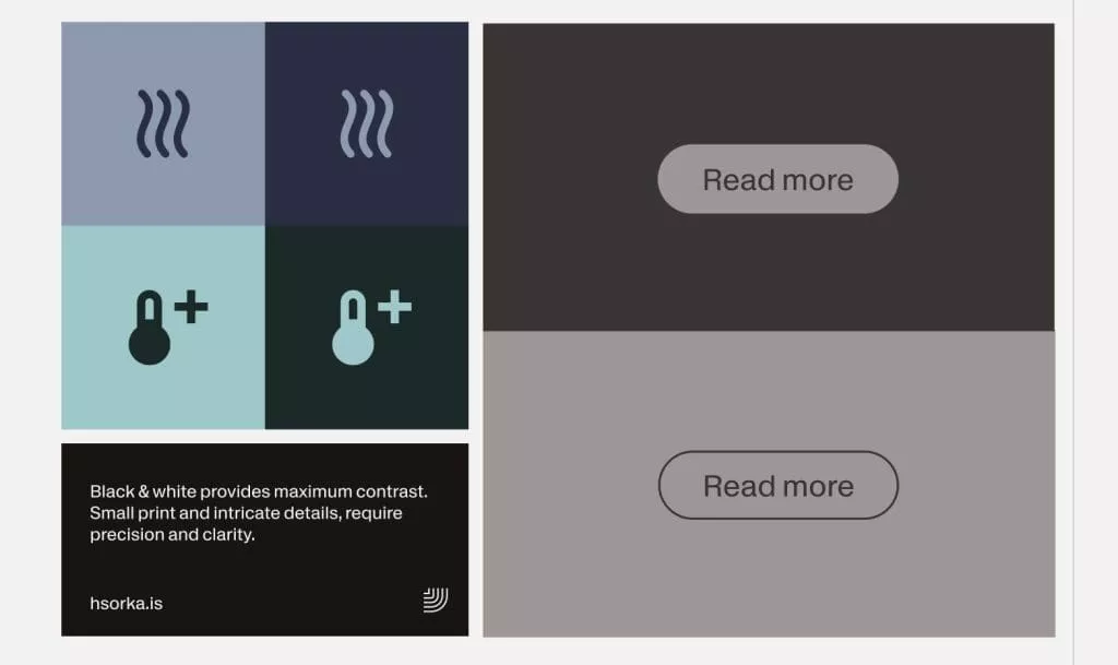 Inspired by photography taken onsite in Iceland, the primary palette reflects the red geothermal pipes, volcanic earth, and open skies surrounding HS Orka’s operations. Red is used sparingly and deliberately – an accent that signals presence without overpowering. A complementary secondary palette of soft greys, greens, and tones from native flora add warmth, clarity, and accessibility across all applications.