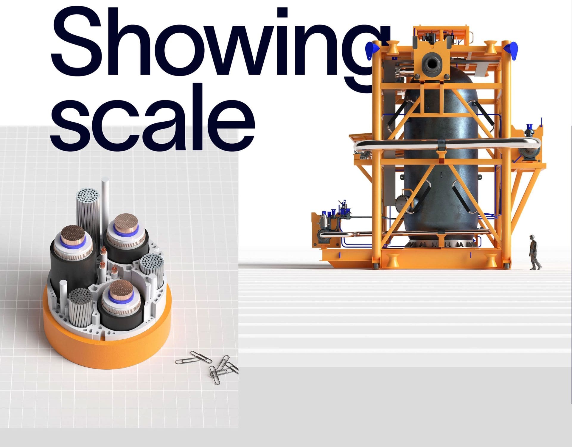 Demonstrating the size of products and the intricate manufacturing process is a challenge in this sector. To tackle this, we created visually appealing yet technical product images. By adding common objects to the scenes, customers can gain a better sense sense of the product’s size and understand the technology and processes involved.